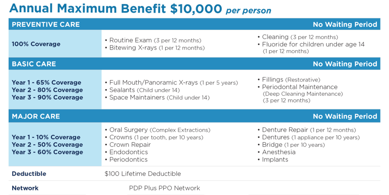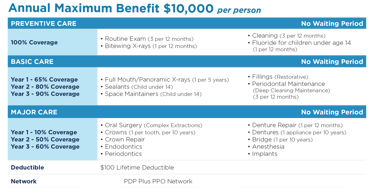 A summary of benefits for our Primary dental and vision provider for coverage starting on Day One
